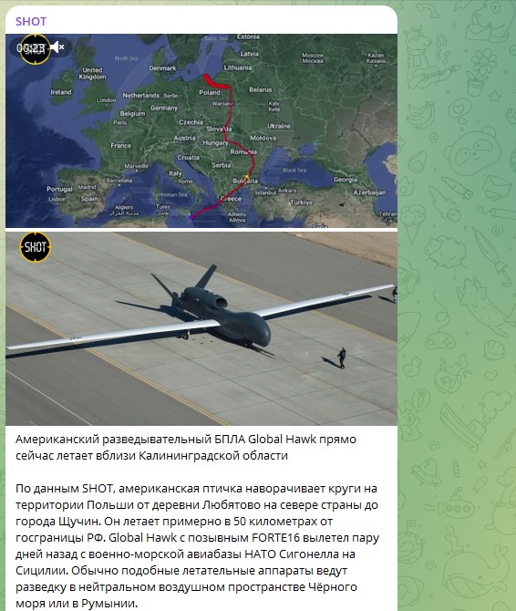 Предвестник обстрелов курсирует у Калининградской области: Американский дрон Global Hawk прибыл к границе России