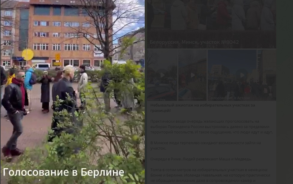 Юлия Навальная и Михаил Ходорковский* пришли на голосование на выборах президента РФ к посольству России в Берлине. Зачем? Залить зелёнкой урну? Бросить "коктейль Молотова"? Нет, нет, нет… Проголосовать за себя. Уже скоро во всех кинотеатрах, как говорится, премьер и президент России в изгнании. И не жалко же Западу грошей на содержание клоунов. Хотя эти на фоне украинского практически ничего не будут стоить.