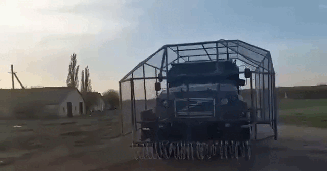 В последнее время на фронте только и разговоров было, что о Царь-танке, вокруг которого фронтовые Кулибины соорудили целый ангар. Однако "за ленточкой" заметили и тотально экранированный броневик З-СТС. Создатели экранов не стали мелочиться и защитили машину сплошным сетчатым коробом, в котором сделали полноразмерные двери. Своей оценкой придумки поделился военный обозреватель Царьграда Влад Шлепченко: