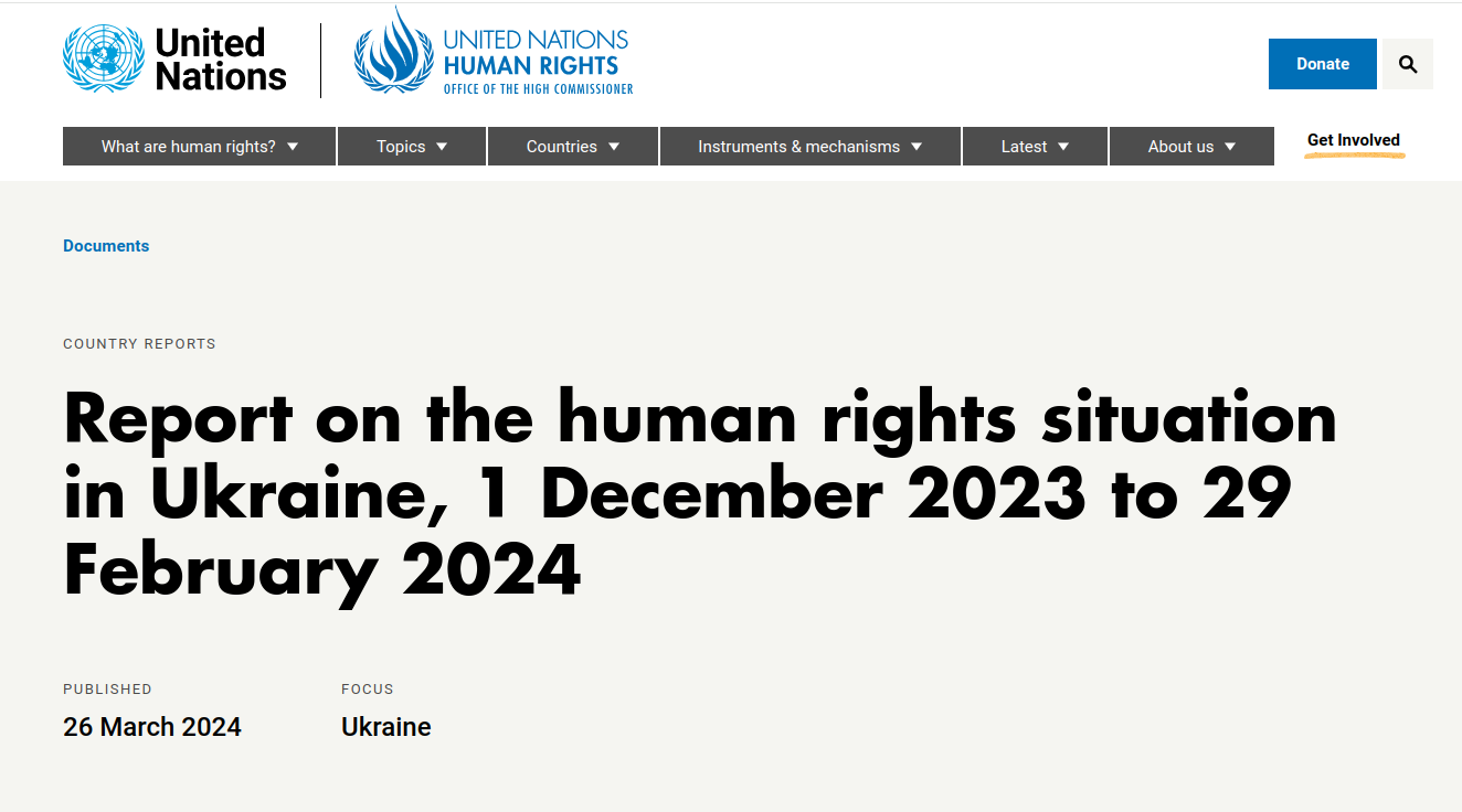 В докладе сказано, что русские пленные подвергались пыткам на территории Незалежной. Происходило это в период с декабря 2023 года по февраль 2024-го.