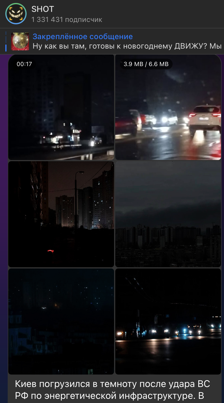 Напомним, в ночь на 28 декабря Киев погрузился в темноту. Наши войска нанесли мощный ужар по энергетической инфраструктуре врага. В результате комбинированной атаки дронами и ракетами произошли взрывы на местной ТЭЦ. Электричества нет уже более 12 часов.