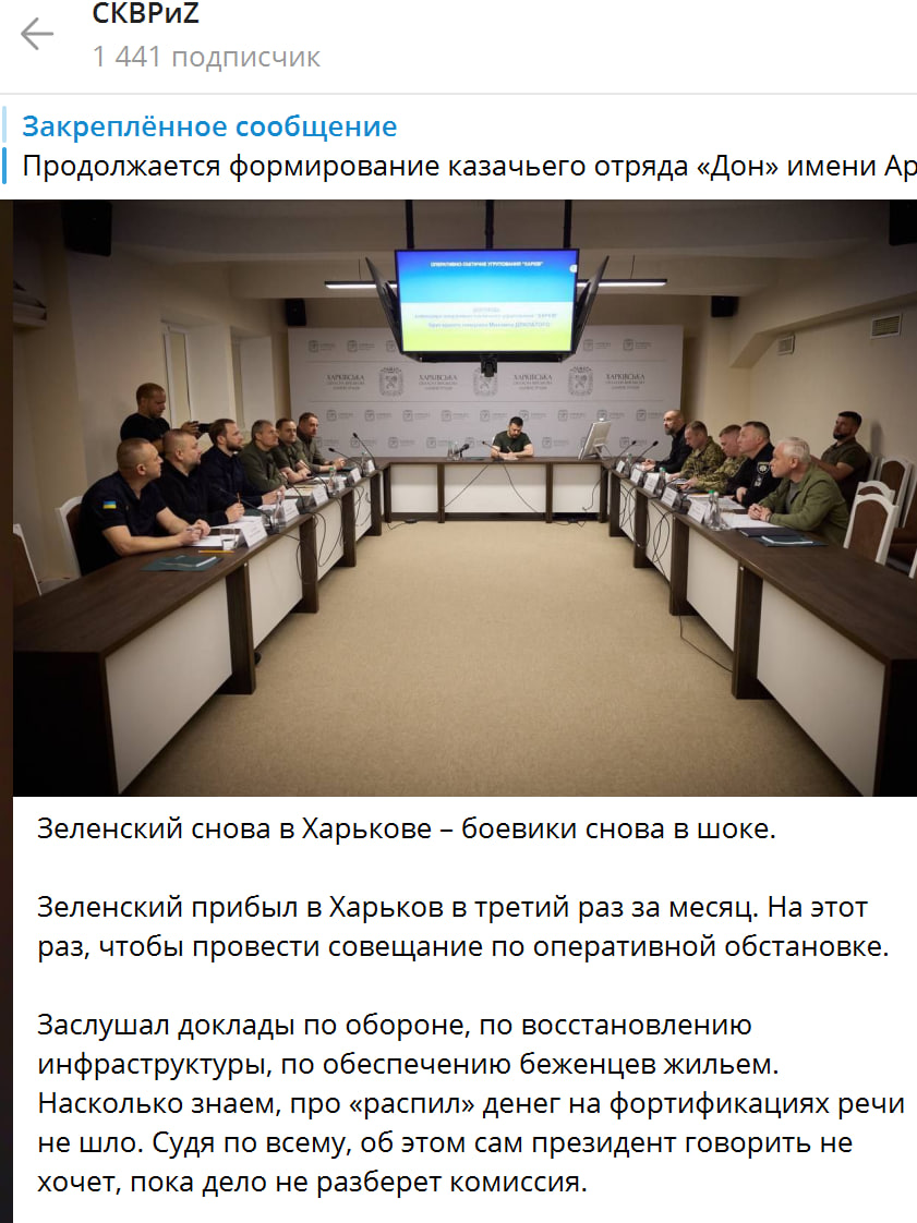 "Насколько знаем, про "распил" денег на фортификациях речи не шло. Судя по всему, об этом сам президент говорить не хочет, пока дело не разберёт комиссия", - говорится в сообщении телеграм-канала "СКВРиZ".