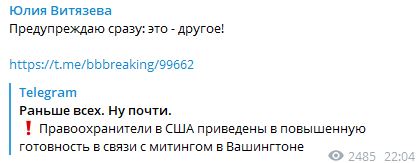 Журналистка Юлия Витязева обратила внимание, что США ранее критиковали Россию за разгон несогласованных митингов Навального. Однако теперь они сами готовятся к силовому решению проблемы.