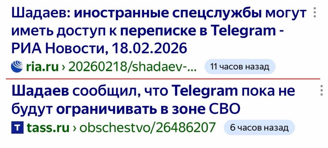 У нас есть прямые подтверждения со стороны правоохранительных органов, что, к сожалению, если в начале СВО Telegram рассматривался как достаточно анонимный сервис, им пользовались наши военные, то сейчас много фактов, которые подтверждены нашими органами, о том, что доступ к перепискам в Telegram имеют иностранные спецслужбы,