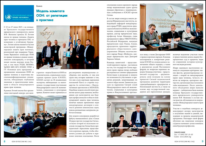 В ведущих университетах нашей страны при поддержке Управления Верховного комиссара ООН по правам человека проходят игры — модель Комитета по экономическим, социальным и культурным правам. Задания вызывают вопросы. Так, в конце июня на площадке Уральского государственного юридического университета имени В.Ф. Яковлева состоялась очередная летняя школа по правам человека. Тема этого года - "Защита прав человека и принципы ESG: от концепции к устойчивому будущему".