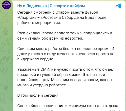 Уважаемые СМИ: не нужно писать о том, что он вёл праздный и гулящий образ жизни. Это не так и полнейшая ложь. Мы с ним всегда и знаем, как он много и усердно работает,