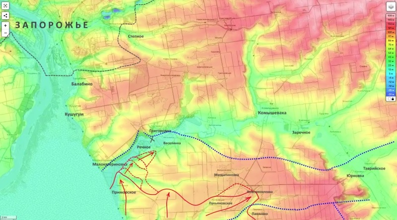 Теперь ситуация развивается по нарастающей. Русская пехота начала проникать севернее, в Приморское. Плотная частная застройка и относительно небольшие разрушения создают идеальные условия для скрытого передвижения и формирования широкой "серой зоны".