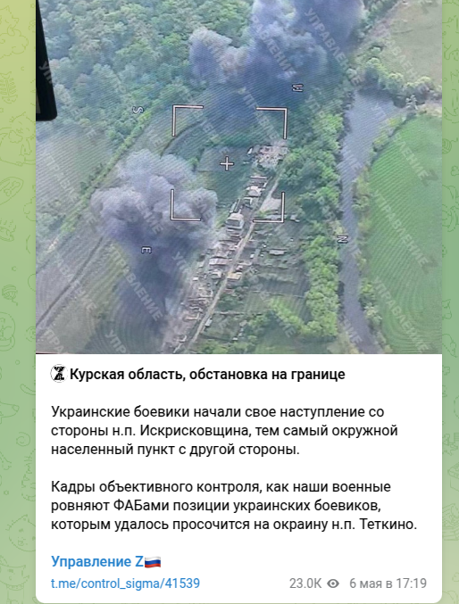 О том, что ВСУ пытаются создать кольцо окружения вокруг посёлка Тёткино в Курской области ранее сообщал Telegram-канал "Управление Z".