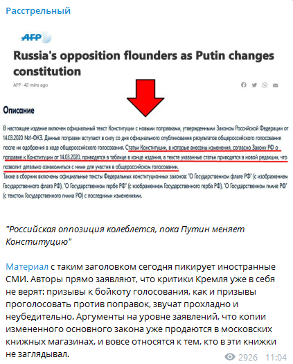 Провал российской оппозиции с ложью о поправках в Конституцию разглядели даже во Франции. Французское информагентство AFP сообщило, что представители либеральной общественности распространили слухи о появлении в магазинах уже исправленной Конституции, хотя даже не заглядывали в книги.