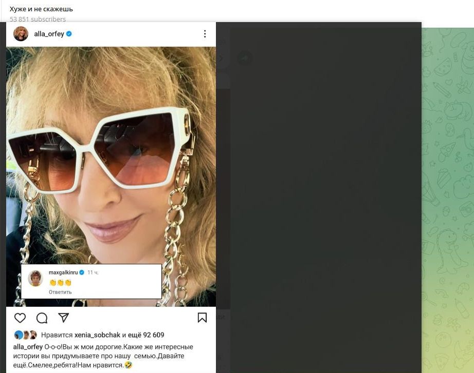 Реакция Аллы Борисовны. Скриншот: телеграм-канал "Хуже и не скажешь"