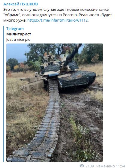 Это то, что в лучшем случае ждёт новые польские танки "Абрамс", если они двинутся на Россию. Реальность будет много хуже,