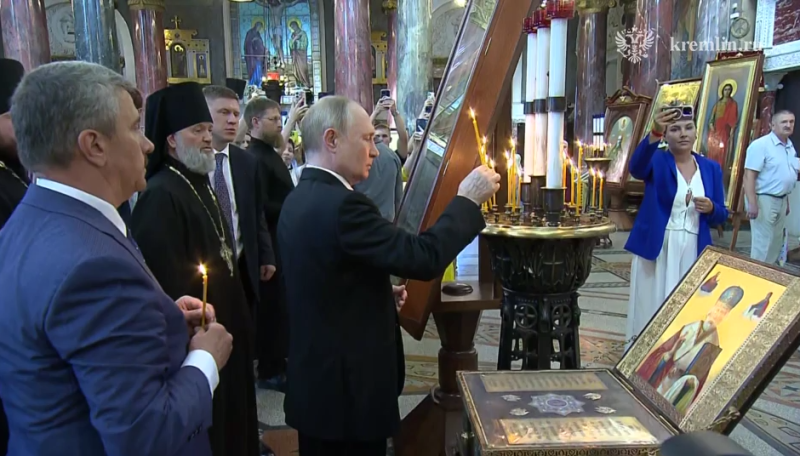 В День празднования Военно-Морского флота лидер России Владимир Путин побывал в Никольском морском соборе, расположенном в Кронштадте.
