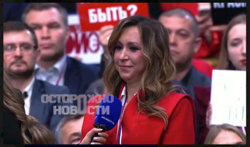 Журналистка, задавшая вопрос. Скриншот: Телеграм-канал "Осторожно, новости"
