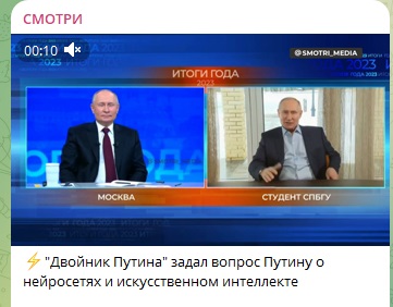 Прямая линия с президентом Владимиром Путиным не обошлась без удивительных поворотов. Один из вопросов главе государства задал… его полный двойник. Оказалось, что изображение было сгенерировано нейросетью - собственно, развития таких технологий и касался вопрос. Президент не преминул пошутить, что наконец обрёл-таки первого двойника.