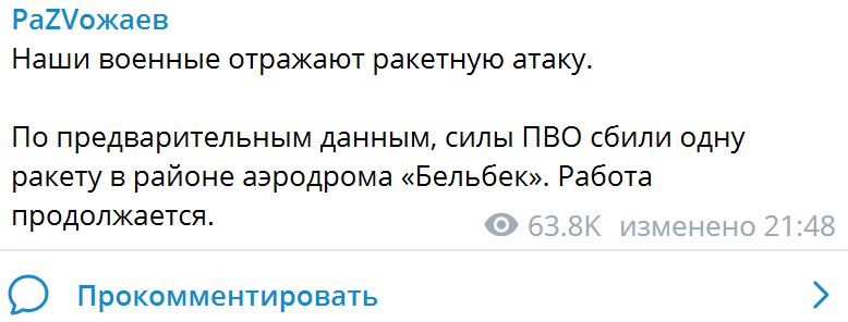 Ракетная атака на Севастополь. Одну из ракет сбили возле аэродрома - Развожаев