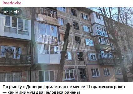 На кадрах с места обстрела, которые поместил канал Readovka, видны пятна крови, разбитые торговые ряды, а также повреждённые ближайшие дома. По предварительным данным, по рынку и его окрестностям ударили не менее чем 11 ракет РСЗО "Град".