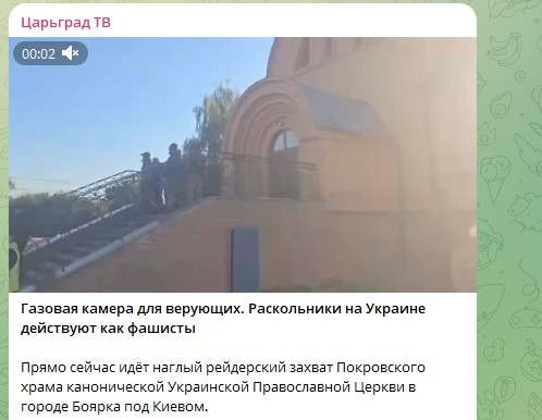В Киевской области в эти минуты происходит рейдерский захват православной церкви в городе Боярке. Раскольники вооружились баллонами со слезоточивым газом и заблокировали выходы из святыни.