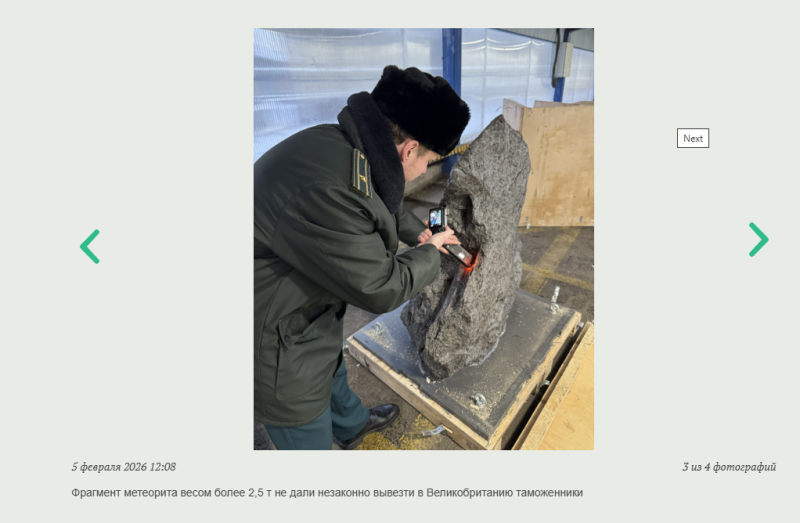 По факту случившегося возбуждено уголовное дело по статье "Контрабанда стратегически важных товаров и ресурсов". Тем временем в СМИ пишут: установлена личность бизнесмена, который руководил схемой вывоза метеорита в Британию.