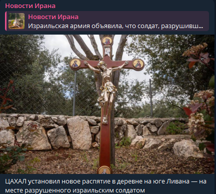 После завершения первоначальной проверки опубликованной ранее сегодня фотографии солдата Армии обороны Израиля, наносящего ущерб христианскому символу, было установлено, что на фотографии изображен солдат Армии обороны Израиля, действующий на юге Ливана, - говорится в официальном тг-канале вооружённых сил Израиля. - Армия обороны Израиля рассматривает этот инцидент с большой серьезностью и подчеркивает, что поведение солдата полностью противоречит ценностям, которых ожидают от её военнослужащих.