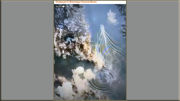 ПОД ШКВАЛЬНЫМ ОГНЁМ РУССКОЙ АРМИИ МОРПЕХИ ВСУ БЕЗУСПЕШНО ПЫТАЮТСЯ ПЕРЕПРАВИТЬСЯ НА НАШ БЕРЕГ ДНЕПРА К КРЫНКАМ. СКРИНШОТ КАДРА ВИДЕО ТГ-КАНАЛА "ОПЕРАЦИЯ Z: ВОЕНКОРЫ РУССКОЙ ВЕСНЫ"