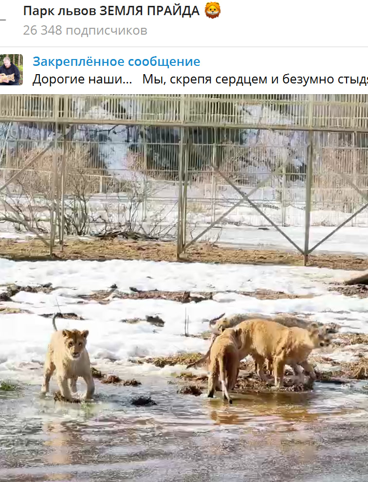 В Подмосковье из-за разлива реки затопило парк львов "Земля прайда". Он закрылся, идёт эвакуация животных.