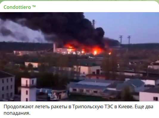 Всё, там Трипольской ТЭС совсем плохо. Четыре или пять крупных пожаров внутри самой ТЭС,