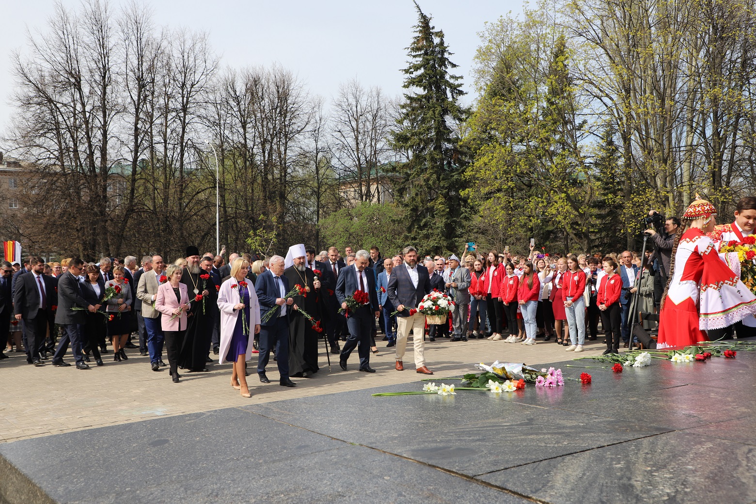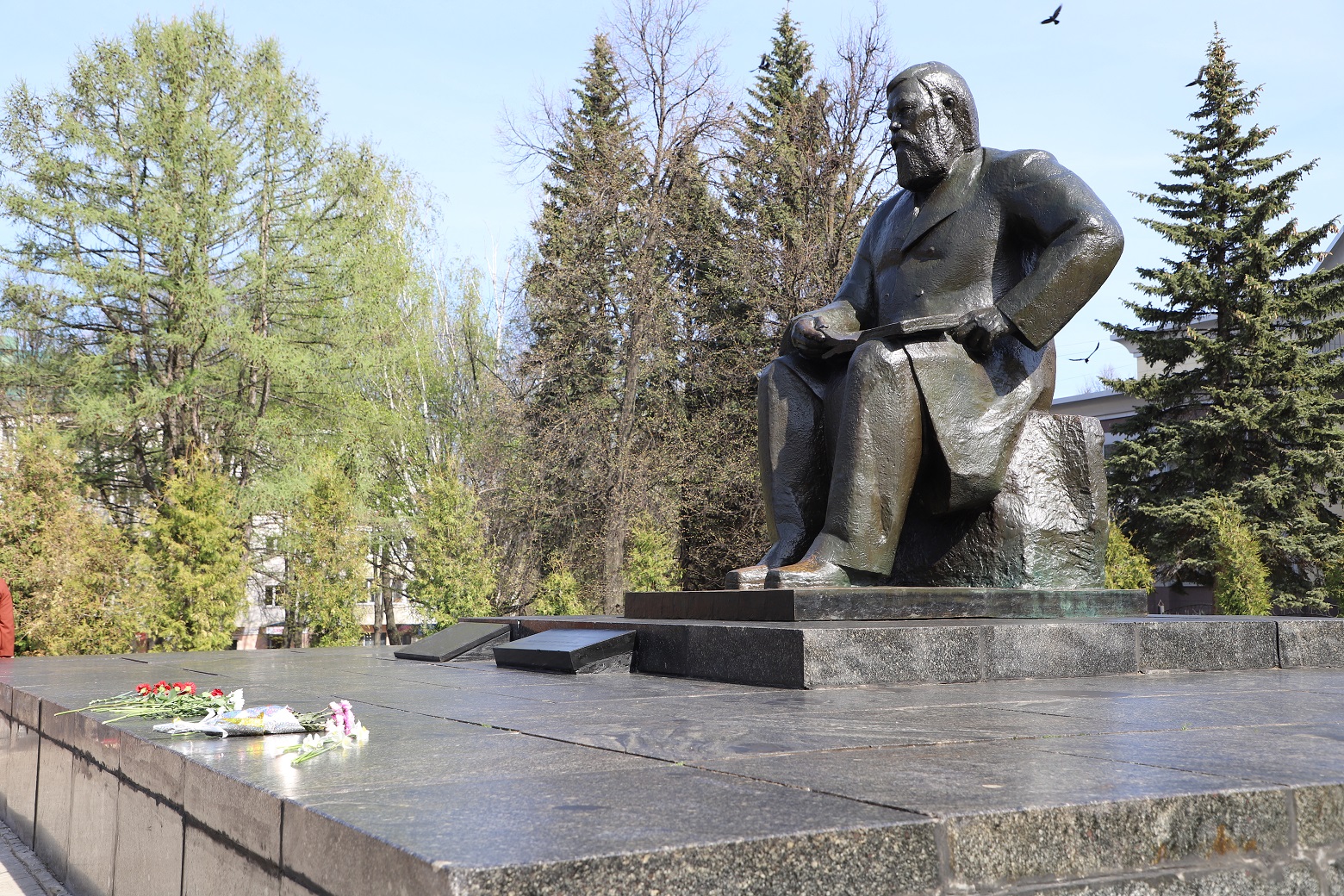 В торжественных мероприятиях состоялось возложение цветов к памятнику Яковлева. Фото: пресс-служба правительства Чувашии