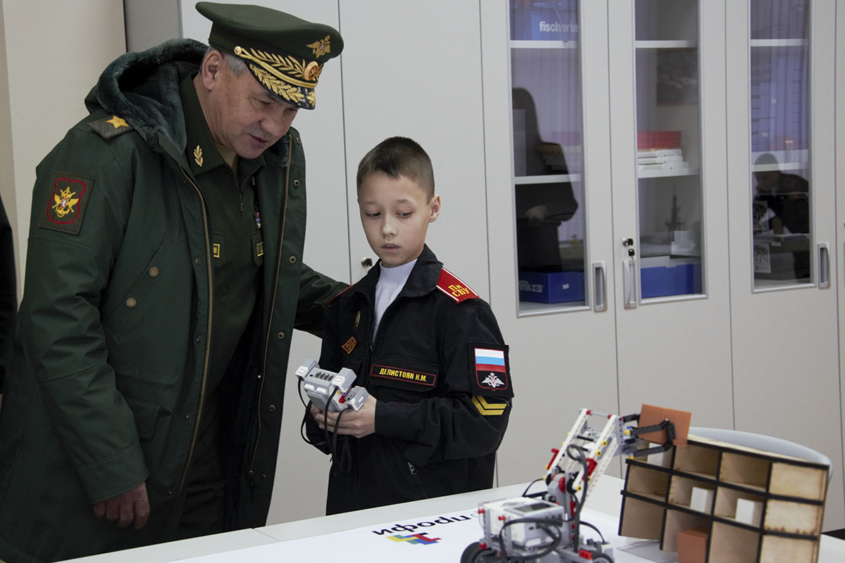Министр обороны РФ генерал армии Сергей Шойгу во время рабочей поездки в войска Центрального военного округа опробовал организацию учебного процесса в Пермском суворовском училище. Фото: MOD Russia/globallookpress.
