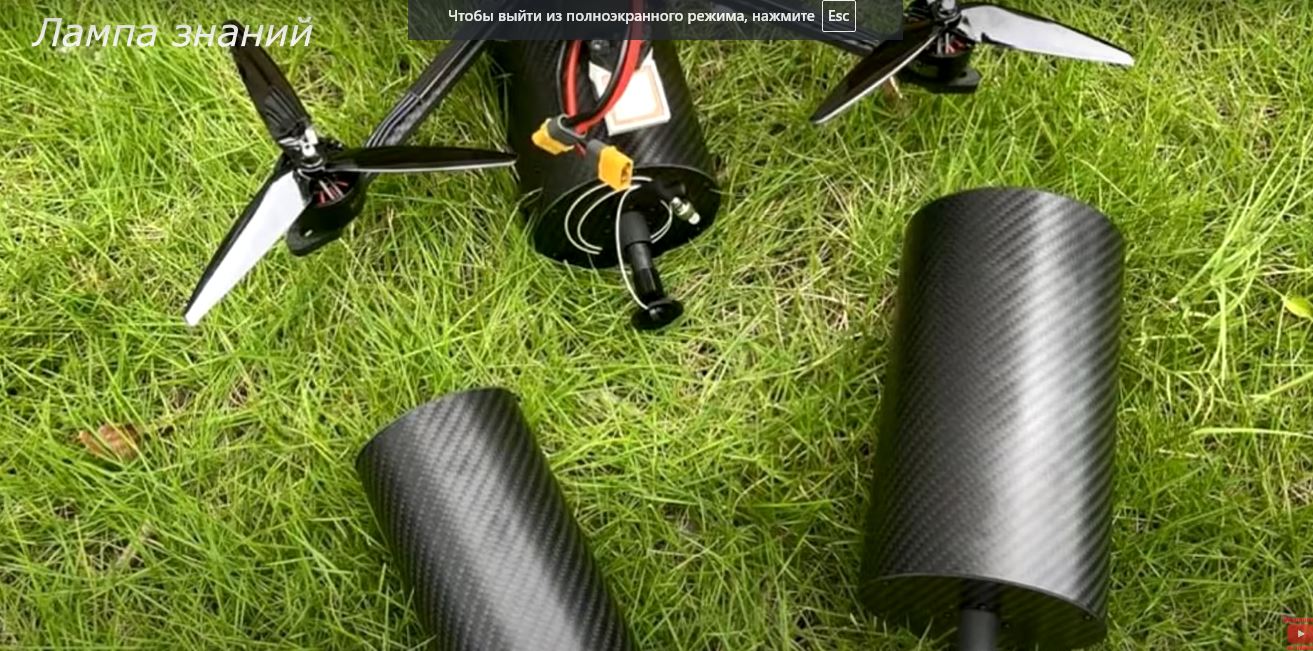 На этом кадре можно оценить размер катушки на дроне. Скриншот: YouTube/Лампа знаний