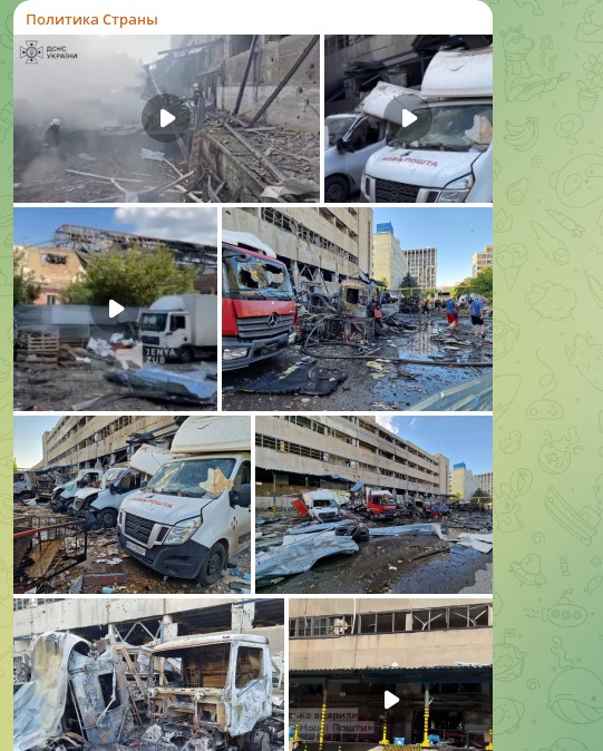 Удар по "Новой почте". Фото: Скриншот Telegram/Политика Страны