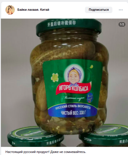 Сейчас российская продукция настолько востребована в Китае, что выходили материалы в крупных западных СМИ, на CNN и в Bloomberg в частности, о том, что наша продукция очень популярна в Китае под брендом Made in Russia. Однако мы столкнулись с тем, что продукцию стали подделывать именно под этим брендом. При этом ничего российского в ней нет - просто кириллицей написана ахинея, чтобы люди думали, что это продукция из России.