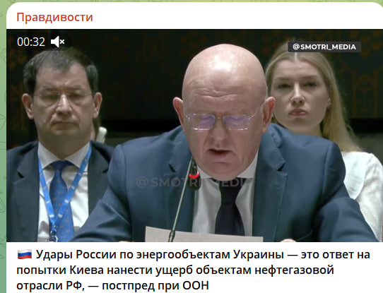 Как заявил на недавнем заседании ООН постпред Василий Небензя, удары России по энергообъектам Украины - это ответ на попытки Киева нанести ущерб объектам нефтегазовой отрасли РФ: