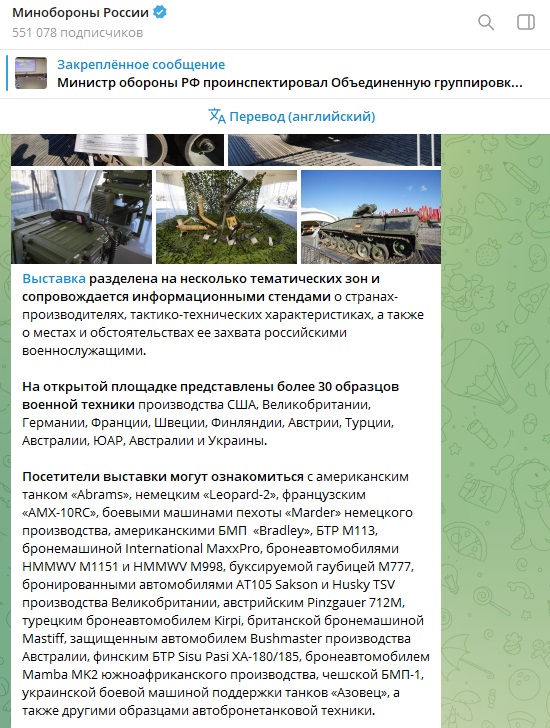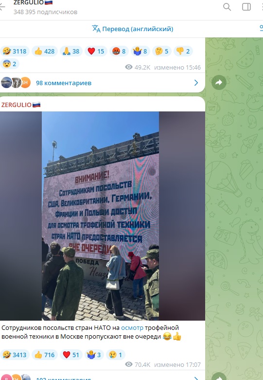 А ещё, согласно информации на одном из информационных стендов, сотрудники посольств США, Великобритании, Германии, Франции и Польши могут вне очереди пройти на выставку и посмотреть, что стало с их техникой. И это правильно. Россия, как говорится, умеет в троллинг - этого у русских не отнять.