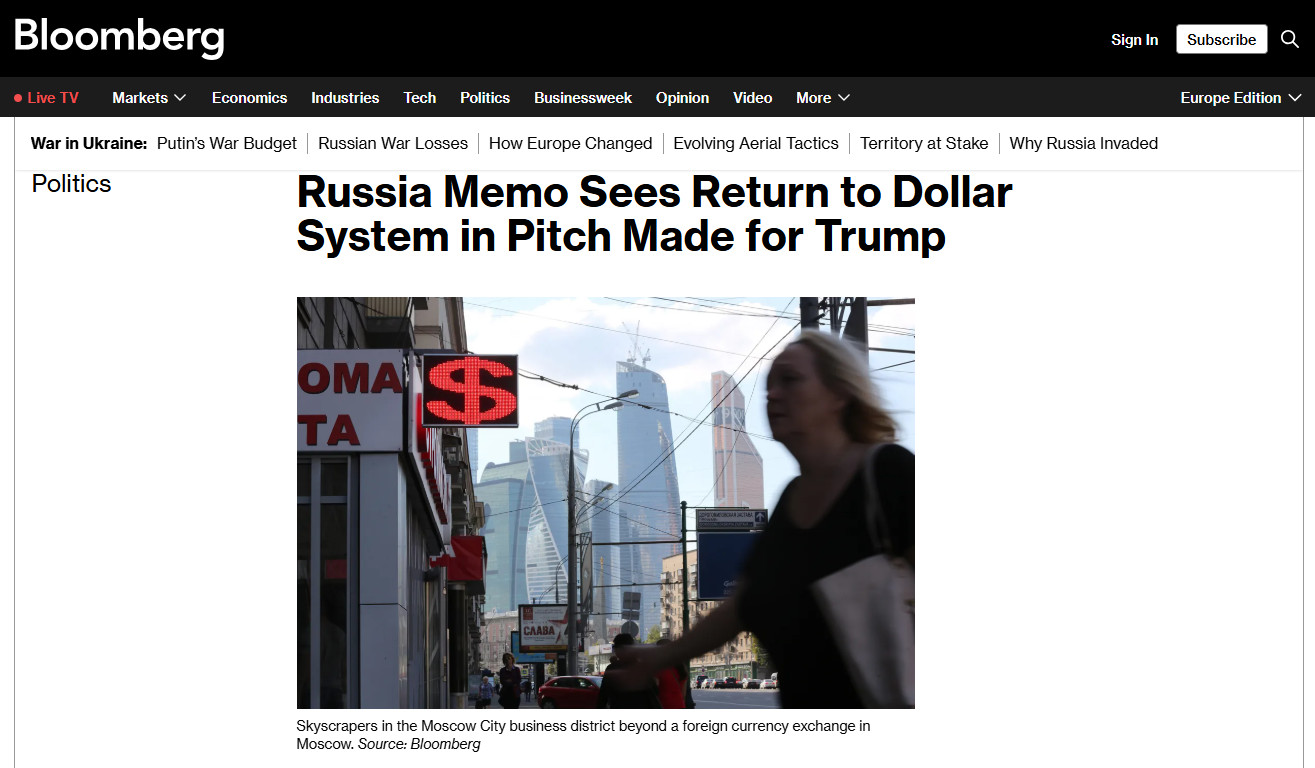 В западных медиа вновь заговорили о возможном "возвращении России к доллару" - поводом стала публикация агентства Bloomberg, в которой со ссылкой на некий внутренний документ утверждается, что Москва якобы рассматривает переход к долларовой системе расчётов в рамках потенциального экономического партнёрства с администрацией Дональда Трампа. Однако реальное содержание обсуждений и текущая финансовая практика России говорят о куда более сложной и прагматичной картине, чем громкие заголовки. Объясняем, что происходит на самом деле.