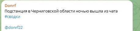 В Черниговской области русский беспилотник "Герань" попал в один из объектов, сообщили власти региона. Известно, что часть области отключена от энергоснабжения.