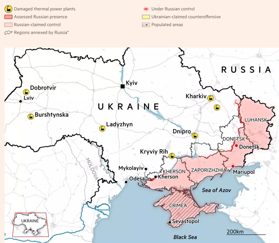 Как пишет британское издание The Financial Times, Россия сменила тактику при ударах по энергетической инфраструктуре Украины: теперь она использует высокоточные ракеты для уничтожения электростанций в районах, удалённых от столицы и менее защищённых. В результате есть риск, что часть поражённых объектов полностью восстановить к следующей зиме не удастся. В то же время чешское издание Seznam zprávy утверждает, что российские военные почти полностью уничтожили энергетику Украины. Кроме того, в материале говорится, что последствия уничтожения объектов инфраструктуры Украина не сможет устранить в течение нескольких лет.