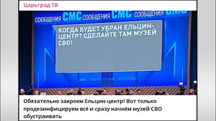 Во время прямой линии с президентом вопрос о закрытии Ельцин-центра тоже прозвучал. Скриншот с ТГ-канала "Царьград ТВ"