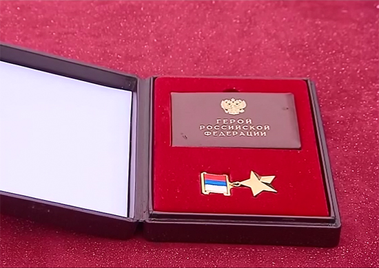 Медаль "Золотая Звезда" и удостоверение к награде Героя Российской Федерации подполковника Олега Анатольевича Пешкова