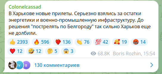 Позже появились сообщения, что в Харькове "новые прилёты", и от русских источников. Военкор Борис Рожин объяснил, почему первую столицу Украины сейчас так долбят: