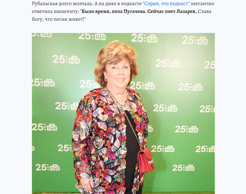 Рубальская ничего не стала отвечать релоканту. А на днях поэтесса вспомнила о том, как Галкин* нападал на неё в соцсетях. В гостях у пранкера Соряна (Сурен Каграманов) она рассказала, что с Аллой Пугачёвой давно не общается. "Примадонна" по какой-то причине много лет назад начала демонстративно игнорировать поэтессу, не отвечала на её звонки.