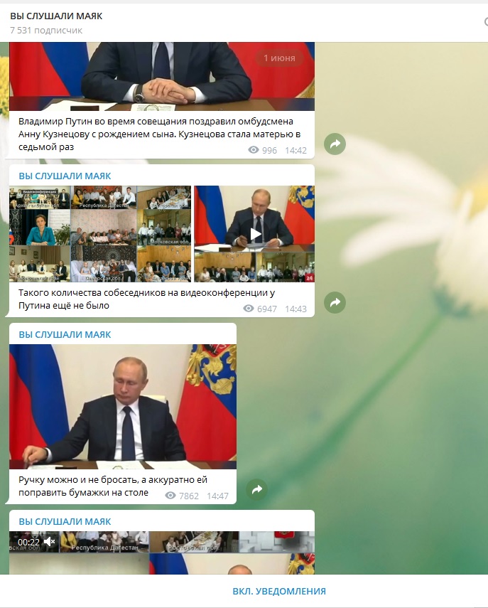 Удивительным образом ручка президента России в дни всеобщей изоляции стала полноценным героем совещаний. Наблюдая за действиями президента в прямом эфире, в том числе в моменты, когда Путин берёт в руки ручку или бумаги со стола, зрители делают выводы о настроении первого лица. Свою роль здесь играют и политологи, делающие предположения о позиции президента.
