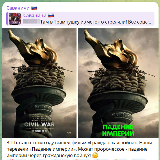 Самое громкое событие последнего месяца - покушение на кандидата в президенты США Дональда Трампа, было заранее предсказано, причём дважды, одно мало кто обратил внимание на это. Русские дали тонкий намёк на "кейс Кеннеди".