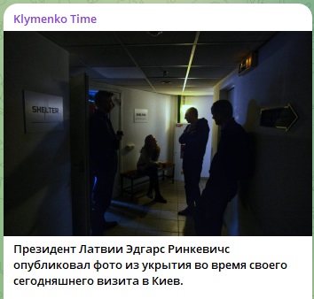 Приехавшему в Киев президенту Латвии Эдгарсу Ринкевичсу пришлось провести несколько часов в подземном укрытии. Туда его загнали русские дроны "Герань".