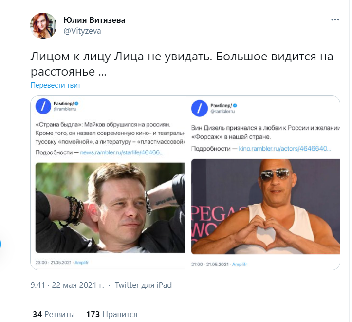 Актёру Павлу Майкову, который назвал Россию "страной победившего быдла", стоит взять урок любви к нашей стране у звезды Голливуда Вина Дизеля. Тот не раз признавался в особом отношении к русским и даже планировал снять у нас очередную серию "Форсажа".