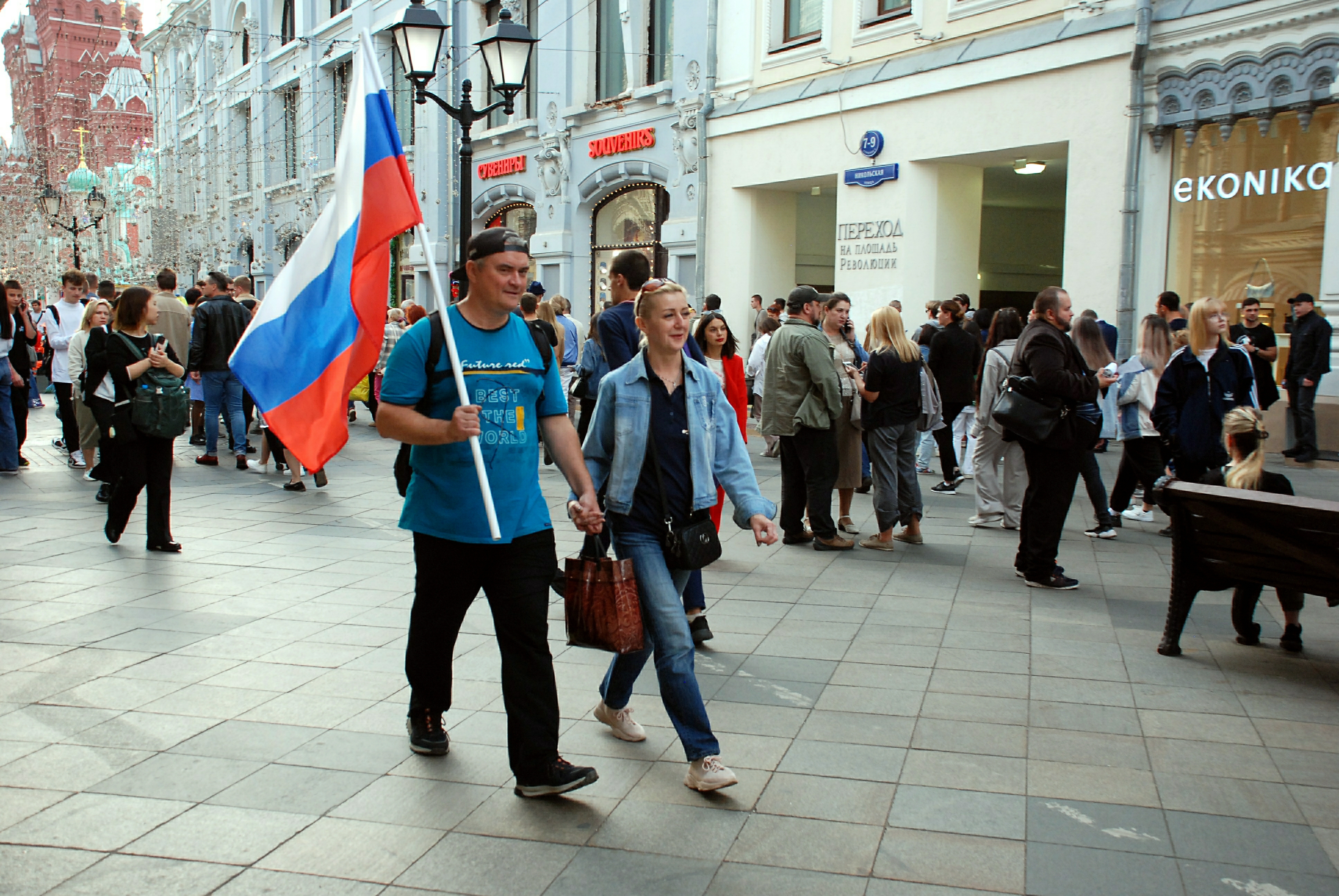 Но и поддержка этого лозунга тоже не вчера началась. И появился он не на пустом месте, а потому в никуда не уйдёт. А услышать его можно при совсем неожиданных условиях. Например, летом в Петербурге после выступления артиста Кишлака молодёжь шла по улице, скандируя громко эти слова. Толпа скандировала в том числе: "Россия! Россия!" "Мы - русские, с нами Бог!" Пара человек по ходу движения остальных развернула флаг Российской империи и отечественный триколор.