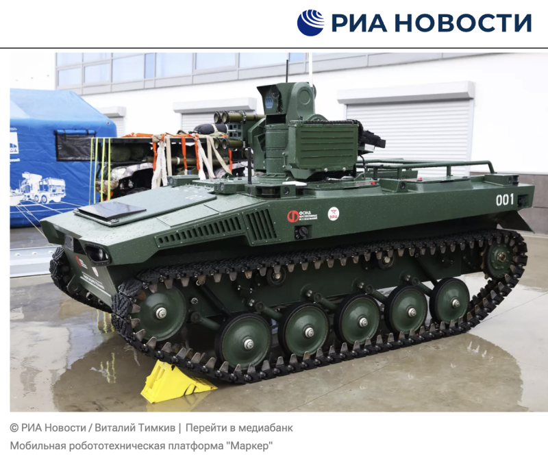 В Донбассе была представлена более совершенная разработка - комплекс "Маркер", который доступен как в колёсном, так и в гусеничном исполнении. Он оснащён различным вооружением, включая пулемёты, автоматические пушки, гранатомёты, а также разведывательное оборудование, позволяющее наблюдать за обстановкой в различных диапазонах: видимом, инфракрасном и радиолокационном.