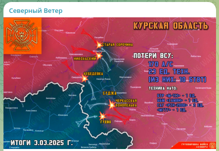 Впрочем, по ту сторону фронта, настроение с каждым днём всё более "похоронное". Местные СМИ утверждают, что у русских войск "новое крупное продвижение в Курской области".