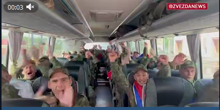 На других кадрах наши бойцы сидят в автобусе и радостно кричат заветное "Ура!" и "Мы свободны!".
