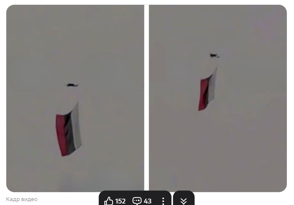 В Сети расходится интересное видео, на котором видно русский флаг, развивающийся в небе над Киевом.