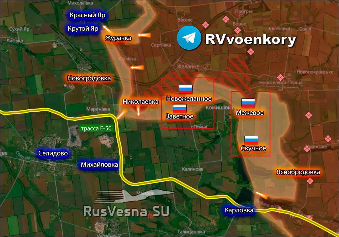 Только за минувшие сутки армия России освободила от боевиков территории площадью более двадцати квадратных километров на Покровском направлении. По информации военкоров, населённые пункты Желанное, Новожеланное, Межевое, Заветное перешли под контроль русских военных. Кое-где бои ещё продолжаются, но это уже скорее зачистка местности от прячущихся по подвалам остатков недобитых боевиков.